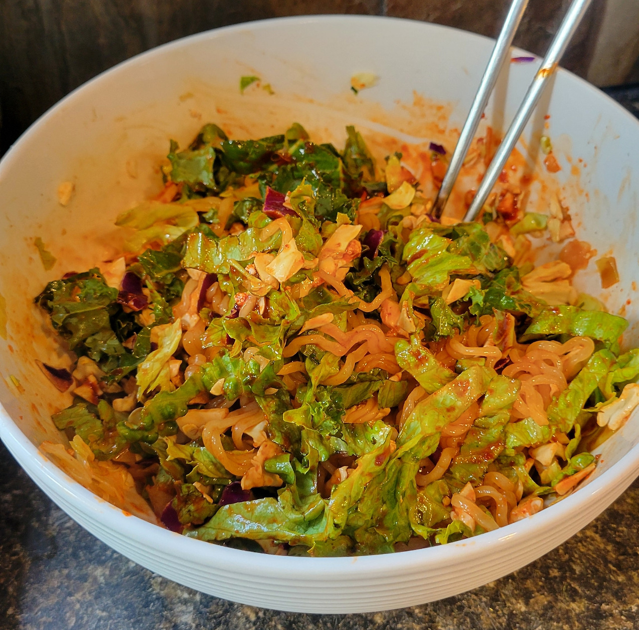 소스와 잘 비벼서 먹으면 완성. 충분한 야채에 약간의 탄수화물과 소스이다. 나름 만족스러운 다이어트 점심이었다..... 깨찰빵을 먹기 전까지는!!