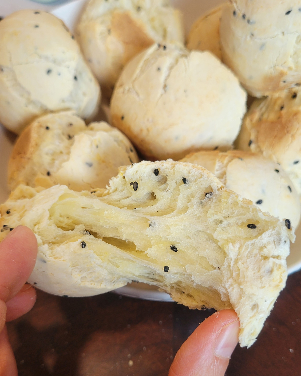 막내와 함께 만든 깨찰빵이 오늘따라 너무 맛있게 쫀득쫀득 잘 구워졌다.