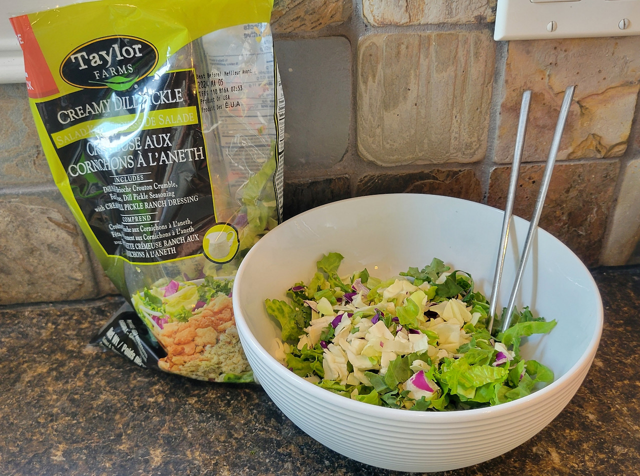 코스코에서 사 온 샐러드를 그릇에 붓는다.
