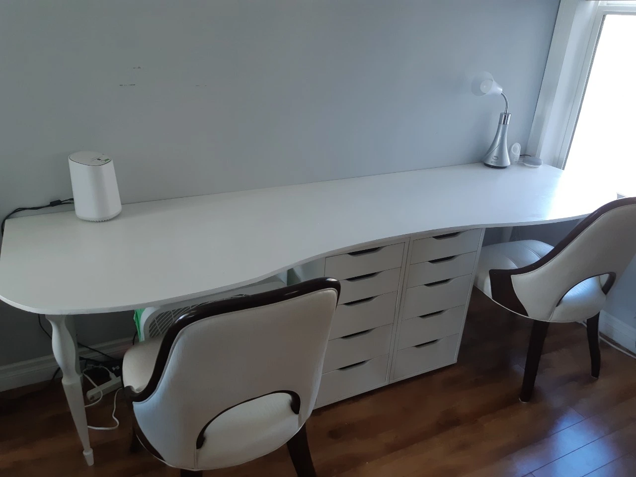 상판 모양 내어 잘라 다리 붙여 2인용 책상 만들기
