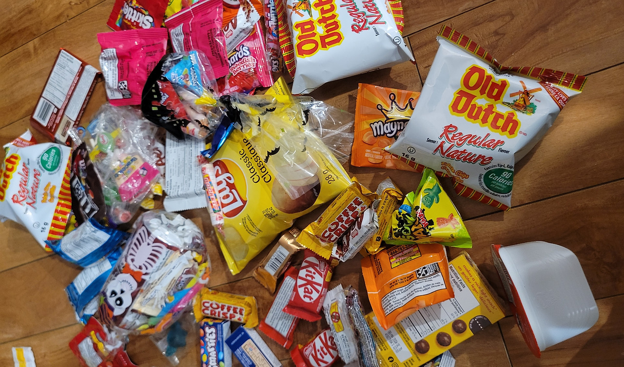 과자, 초콜릿, 사탕, 음료수, 젤리 등 종류도 다양하다. 아이들은 서로 바꾸기도 하고 나눠주기도 하면서 즐겁게 구경을 한다. 아이들이 먹기 전에 혹시 모르니 내가 한번 살펴보고 3개씩만 골라 먹게 했다. 이 정도 양이면 내년 할로윈까지 먹을 수 있다. 다음 달 크리스마스 퍼레이드 때 받을 사탕들까지 합치면 2년은 먹을 것이다. 아이들은 간식을 많이 받아 좋아 하지만 엄마인 나는 건강이 걱정돼 안 먹게 하고 싶은 마음뿐이다.