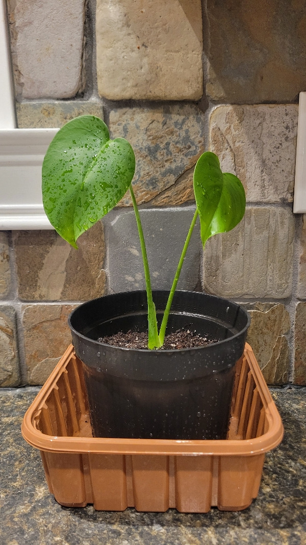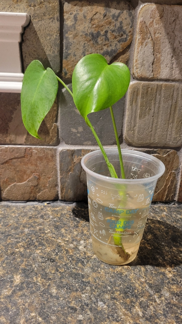 화장실에 생기를 주겠다고 화장실에 물꽂이 해두고 한동안 예쁘게 키우다가 큰 잎은 시들고 새로운 잎이 나왔다. 빛이 전혀 들지 않는 곳이라 최대 손바닥 만한 크기로 자라나다가 시들고, 새잎이 나오고를 무한 반복 중이었다. 죽을 듯 죽을 듯 죽지는 않고 계속해서 새 잎을 내고 있지만 새 잎이 나오면 두 개 중 한 개가 시들어 버려 계속 이 상태였다. 뿌리도 가득 생겨나다가 물러서 썩어버리면 잘라주고 그렇게 2년을 이렇게 버텨줬으니 얼마나 기특한지. 이제 더 이상은 안 되겠다 싶어서 흙에 심어주었다. 햇빛 쬐여주고 신경 써주면 찢잎도 생기고 쑥쑥 크겠지.