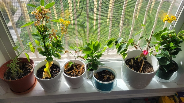 식물 키우기가 좋은 취미라고 생각하지만 따로 돈을 쓰기는 아까워 식물 심을 화분도 웬만하면 따로 사지 않고 테이크아웃 커피컵, 못쓰는 그릇, 방울토마토 용기 등을 이용하고 화분받침은 잼뚜껑, 냉동식품 용기, 케이크 뚜껑, 쿠키 용기 등을 이용하고 있다. 물도 너무 많이 쓰게 돼서 깨끗하게 쓴 물은 따로 모아놨다가 재사용하여 주고 있다. 쉽게 구할 수 있고, 쓰레기도 줄이고, 돈도 안 들고 다 좋은데 화분이 좀 허름하다 보니 손님이 왔을 때 조금 부끄러운 게 있다. 그래서 달라 스토어에서 괜찮게 나온 화분, 마트에 좋은 가격에 나온 화분을 몇 개 샀다. 화분 바꿨다고 집 분위기가 달라지니 돈을 좀 써도 되겠다 싶다. 예쁜 화분에 예쁜 식물 심어서 주변에 선물을 하고 싶은데 원하는 사람이 없어서 낭패다. 식물 좋아하는 사람은 이미 화분이 집안 가득이라 사양이고, 좋아하지만 잘 못 키우는 사람은 선물로 받아간 식물을 초록별로 보내니 더 주기가 힘들다. 내가 끝까지 책임지고 잘 키우는 수밖에 없겠다. 창가마다 화분이 가득이라 이제 더 이상 화분 늘리기는 그만하자 싶지만 오늘도 세이지 삽목을 해볼까 말까 수십 번 고민 중이다. 행복한 고민이다.