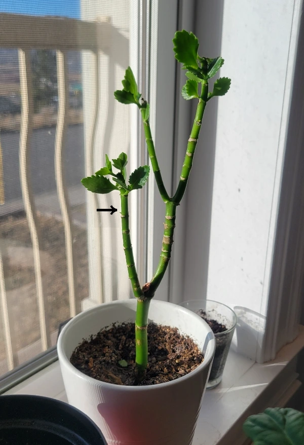 화살표 부분에 아주 작은 잎이 나오고 있는데 금세 커진다.
