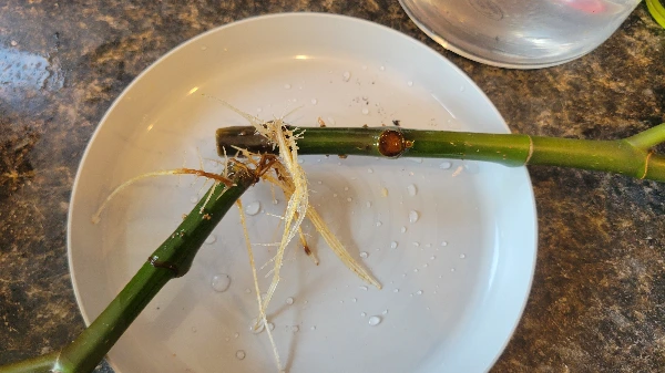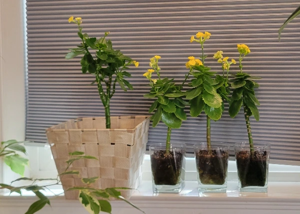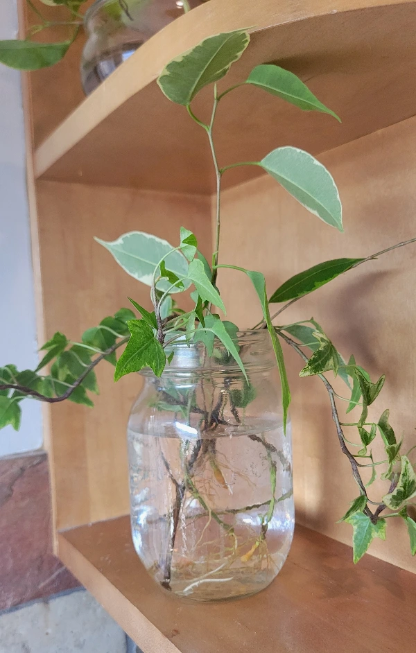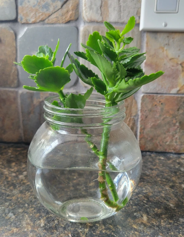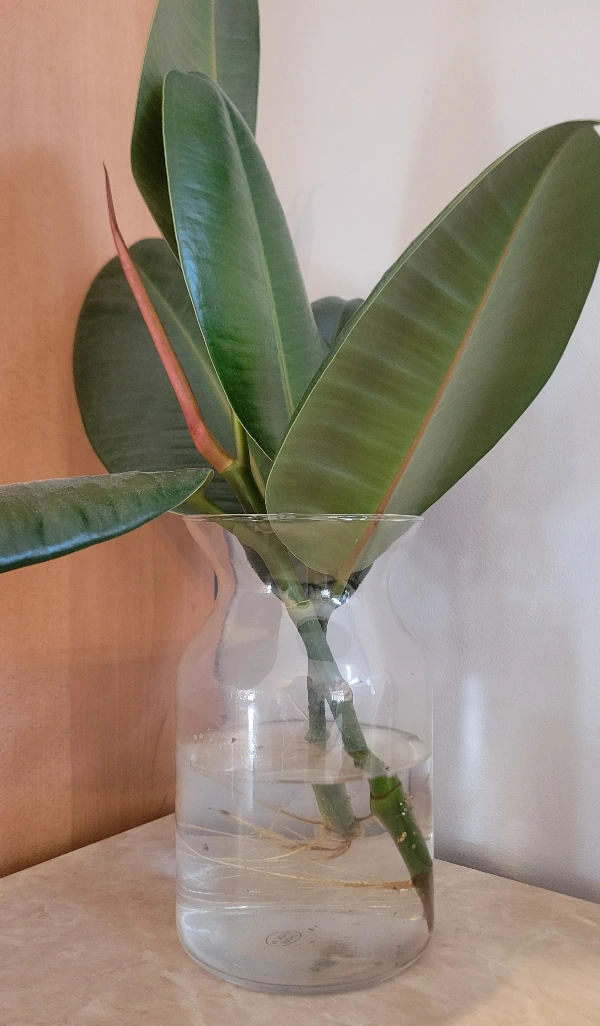 잘라낸 가지를 물에 꽂아 밝은 창가 앞에 놓아두었다. 2~3주면 뿌리가 나온다.
