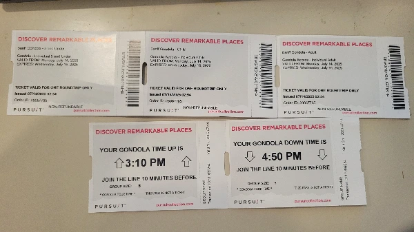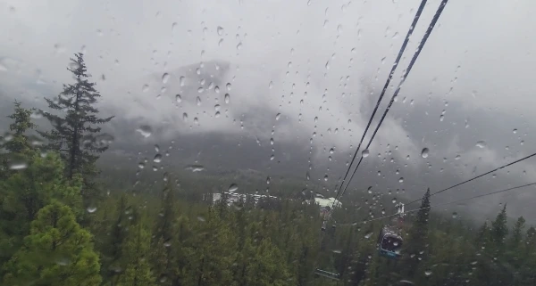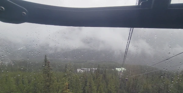 밴프에 가까워질수록 비가 많이 내렸다. 비가 많이 내려서 GPS가 안 잡힌 건지 구글지도도 검색이 안되고 신랑과 나의 의사소통 오류로 인해 밴프로 들어가는 고속도로 출구를 지나쳐버렸다. 다행히 얼마 안 가서 구글지도가 다시 검색되었고, 밴프를 지나쳤다는 걸 알게 되어 다시 차를 돌렸다. 나는 신랑에게 밴프시내를 지나서 곤돌라가 있다고 얘기했는데 신랑은 곤돌라가 밴프를 지나서 다른 곳에 있는 줄 알았던 것이다. 차를 돌려 다시 밴프시내로 들어오느라 20분 정도가 더 허비되었다. 그래도 거의 다 도착했으니 금방 갈 수 있을 것이다. 차로 꽉 막힌 밴프시내를 지나 산 쪽으로 올라오니 넓은 주차장에 곤돌라 탑승장이 있었다. 다들 화장실이 급해 화장실 먼저 갔다가 티켓을 받으러 갔는데 그 시간이 3시 5분이었다. 시간약속 지키는 것을 정말 중요하게 생각하는 나이지만 오늘은 너무나 늦어버렸다. 직원에게 예약번호 보여주며 시차를 생각 못해서 늦게 오게 됐다는 것을 얘기하니 종종 그런 일이 있다고 했다. 그리고 이제 곧 3시 10분 곤돌라 탑승을 마지막으로 탑승이 끝난다고 했다. 3시 10분 이후에는 단체 탑승객들이 있어 더 이상 개별 탑승은 불가하다고 했다. 조금만 더 늦었어도 곤돌라도 못 타고, 돈도 잃게 되는 것이었다. 놀란 가슴을 쓸어내리며 다음에는 더욱 넉넉히 시간을 잡고 준비해야겠다고 생각했다.