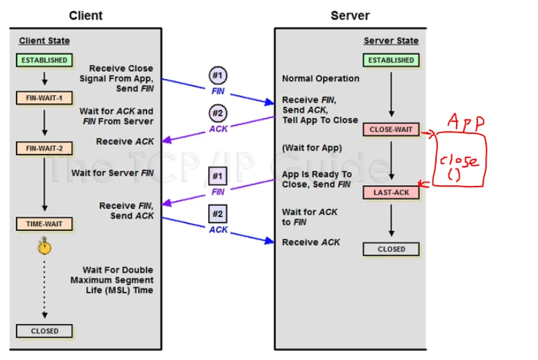 사실 이는 서버와 클라이언트 간 구분은 없다. 먼저 서버를 끊는 쪽에서 FIN 신호를 보내기 때문이다. 그래도 절차적으로 나열해보도록 하자. 여기서는 요청을 한쪽을 Active_closer, 요청을 받은 쪽을 Passive_closer로 하겠다.