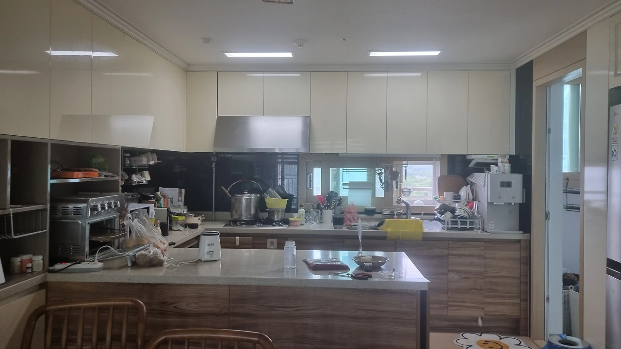 가스레인지 위에 설거지 후 쌓아둔 냄비는 물기를 닦아 싱크대 안으로 넣고, 커피머신 옆 대충 놓였던 보이차 티백이랑 각종 영양제를 추슬러 오래된 건 버리고 쓸모 있는 바구니에 차곡차곡 정리를 했다. 전자레인지와 에어프라이어 위에 뽀얗게 쌓인 먼지를 닦아 서랍에 숨어 있던 이케아 면포를 한 장씩 덮어 나름대로 멋을 냈다.