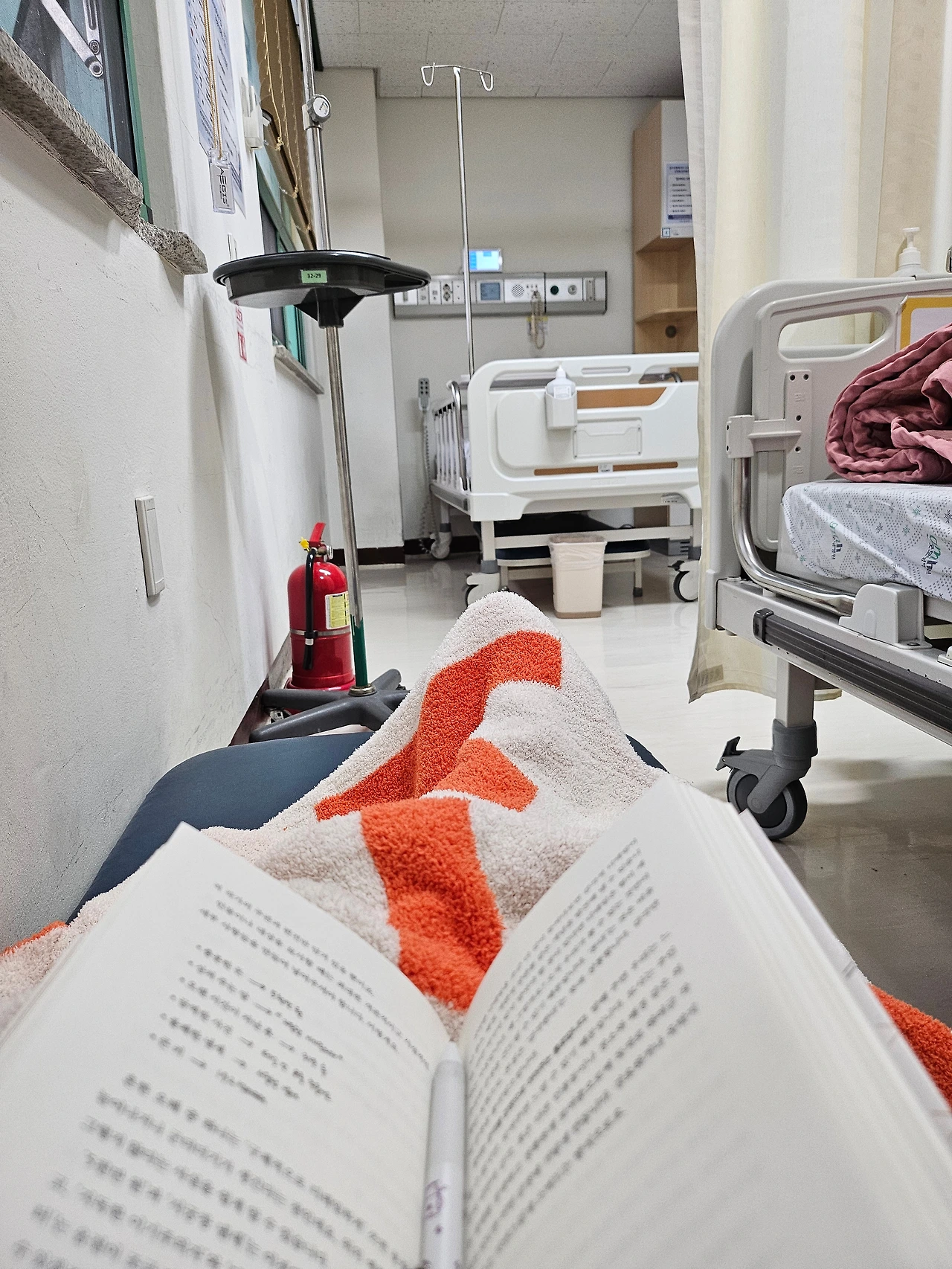 코골이 공격 할머니가 퇴원하고 드디어 1인실 같은 4인실을 쓰게 되었는데 빈 침대를 차지하고 있는 건 도덕성에 어긋나는 일이라 원래 내 자리인 좁은 보호자 간이침대에 처박혀 있다.
