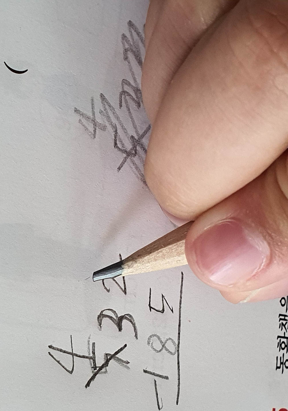 겨우 연필을 쥐고 문제를 풀던 딸을 가만히 보니 연필심이 거의 남아 있지 않는 걸 붙들고 있다.