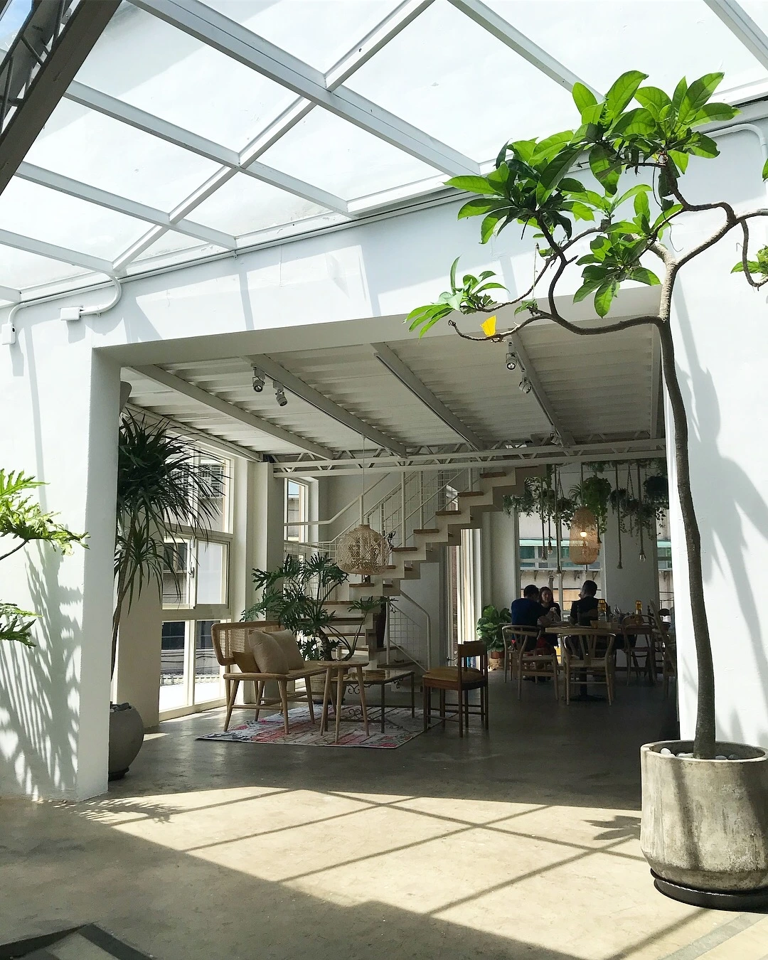 시 중심에서는 보기 힘든 독채 건물에 햇살 좋은 캘리포니아가 떠오르는 화이트, 그린, 라탄 조합의 인테리어, 메뉴도 미국식 브런치라 모든 것이 딱 맞아떨어진달까, 보통 11시가 넘어 문을 여는 여느 브런치집과 다르게 오픈 시간이 아침 8시라는 사실도 근처 외국인학교에 아이들을 보내는 학부모들에게는 반가운 소식이다. (평일에도 2층까지 만석일 정도로 사람이 많으니 미리 예약은 필수)
