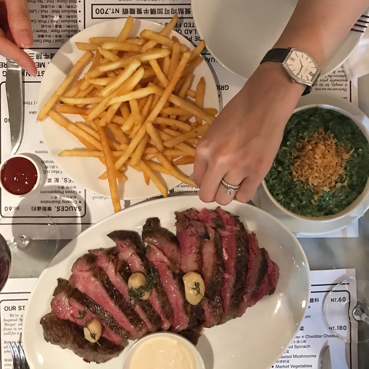 한 시간여의 힘겨운 웨이팅 끝에 자리에 앉은 후 '굽기'만 골라주면 주문 끝. 여기는 심지어 메뉴판도 없다. 10분이 안되어 겨자소스 샐러드, 빵, 그리고 특제소스가 뿌려진 스테이크와 감자튀김이 나온다. 감자튀김은 또 무제한이란다. 음, 이 일련의 프로세스를 보고 있자니 우리가 사는 타이페이의 어느 한 곳이 떠오른다.