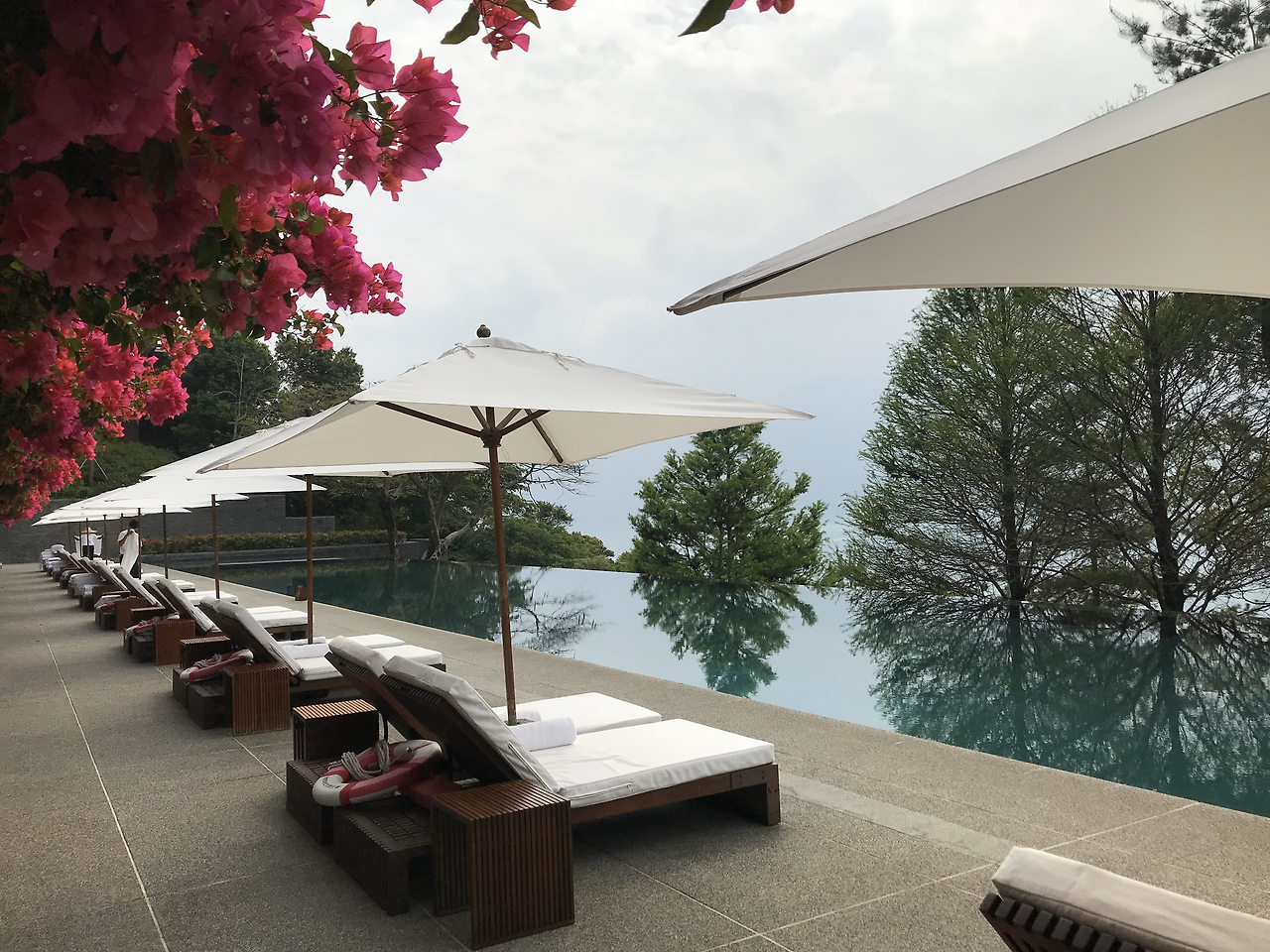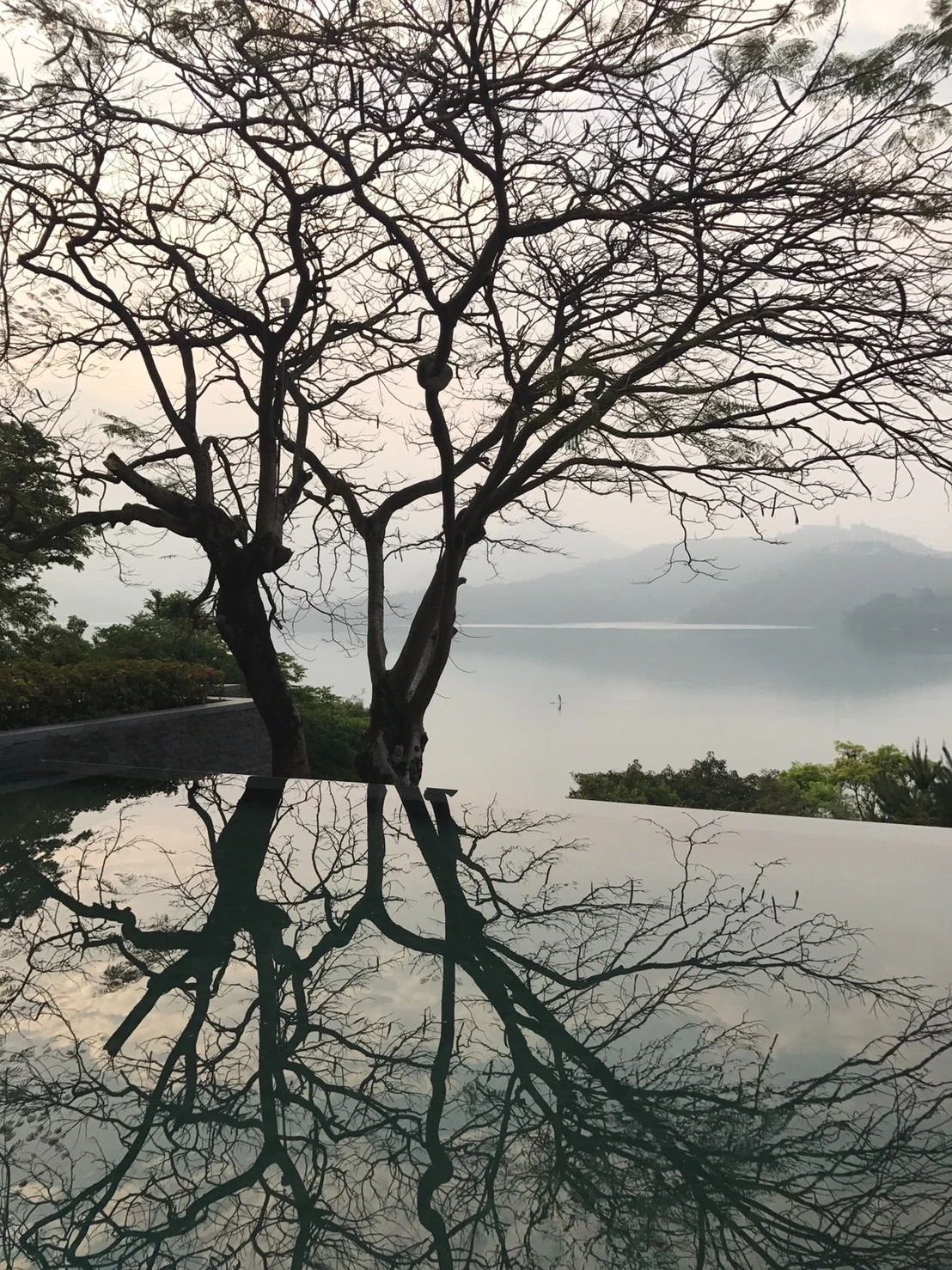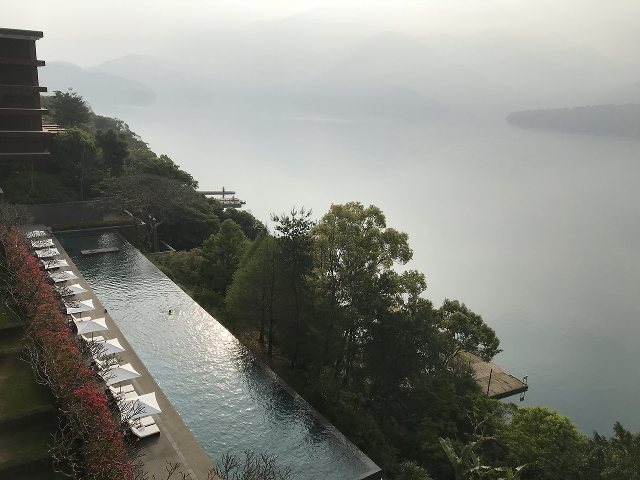 일월담을 품고 있는 The Lalu의 인피니티풀에는 이렇게 예쁘게 하늘이 비친다. 안개가 자욱한 호숫가와 대비되어 비현실적인 풍경을 자아내는 곳이라 일찍이 눈에 띄어 예전 한국 드라마 '온에어'의 해외 촬영지로 선택되기도 했다.