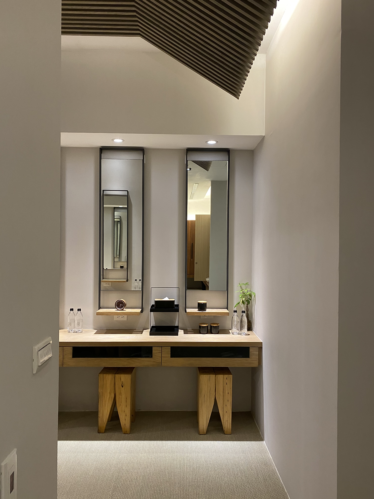5성급 호텔들을 다녀봐도 빈틈을 보이기 쉬운 곳이 바로 이 '사우나 시설 관리'. 선 엉킨 드라이어기와 간간히 보이는 머리카락, 혹은 삐뚤빼뚤 놓인 스킨로션과 선반 위 약간의 먼지들. 은근히 보기 쉬운 광경이다. 그만큼 많은 사람들이 이용하고 물을 사용하는 공간이기 때문에 정리정돈 및 청결유지가 쉽지 않다. 그럼 이 곳 Yun Estate 호텔의 온천시설은 어땠을까? 매의 눈으로 봐도 정말 깨끗하다 못해 반짝반짝 빛날 정도! 수건 정리함에서 남이 쓰고 간 타월 한 장 구경 못하고, 면봉 꽂이 위에조차 이만치 먼지 한 톨 없는 100% 청결함을 보긴 정말 오랜만이다. (최고 최고!)