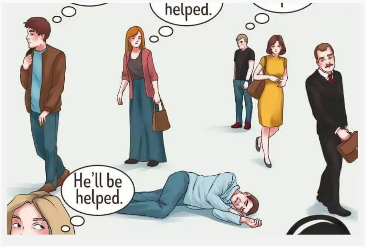 위에서 처럼 사람의 이러한 심리를 ‘방관자 효과(Bystander effect)’ 또는 제노비스 신드롬(Genovese syndrome)이라고 부른다. 방관자 효과는 주위에 사람이 많을수록 그만큼 개인이 부담하는 책임이 분산돼 어려움에 처한 사람을 돕지 않게 된다는 것을 뜻한다. ‘내가 아니어도 다른 사람이 도와줄 거야’라는 생각이 자신의 도덕적인 책임을 분산시킨 결과라고 할 수 있다.