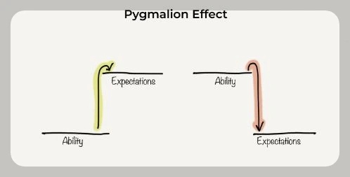 그리스 신화에 나오는 피그말리온(Pygmalion). 조각가 피그말리온은 자신 스스로 조각한 여인상과 사랑에 빠진다. 여신 아프로디테는 결국 이 모습에 깊은 감동을 받고 그 여인상에 생명을 넣어주게 된다. 신화의 이야기지만 심리학 분야에서는 피그말리온 효과(Pygmalion effect)를 통해 기대가 어떻게 현실에서 나타나는지를 자신과 타인 관점에서 설명하고 있다.