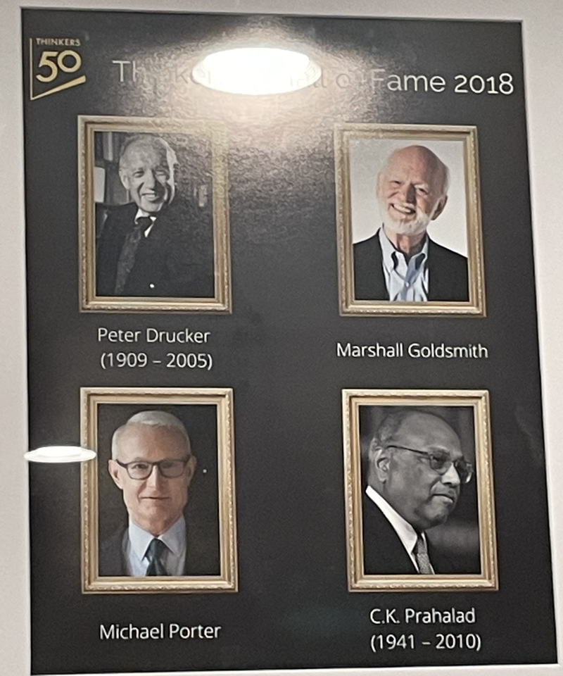 지하 1층에는 화상회의와 영상녹화를 위해 스튜디오까지 보유하고 있었다. 스튜디오로 들어서니 명예의 전당(Hall of fame) 2018년에 피터드러커, 마이클 포터, 프랄라드 등의 경영학계 거장들과 함께 경영학계의 노벨상에 해당하는 “Thinkers 50” 액자를 이곳이 어떤 곳인지 다시금 실감하는 순간이었다. 경영학계에서 위대한 사상가(Thinkers) 50인을 선정하는 것이다.