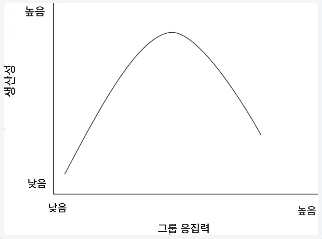 팀의 응집력이 과하면 생산성을 저하시킨다