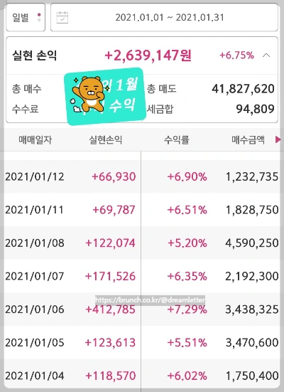 모더나가 코로나19 백신 위탁 생산 국내 업체로 녹십자를 선택했다는 설이 돌고 있다. 거래량이 터지면서 주가가 상승세이다. 현주는 돌파매매 전략을 자주 사용했다. 비중이 많지 않기에 가능한 것인지도 모른다. 현주는 십만 원 벌기의 달인이 되고 싶었다. 하루 십만 원씩 적립하면 한 달 20 거래일에 이백만 원은 벌 수 있다는 계산이었다.