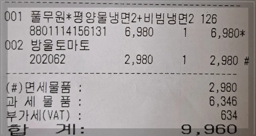 만원의 행복 장보기를 하는 편이다. 4인 냉면 6,980원. 요일별 할인행사할 때 가서 샀다.