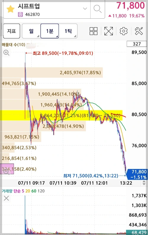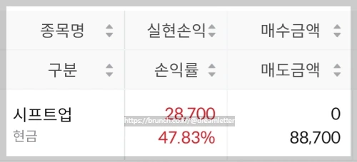 시초에 호가 장난을 하더니 33.17% 상승한 79,900원으로 시작해서 89.500원(49.17% 상승)까지 빠르게 상승했다. 나도 88,700원에 빠르게 팔았다. 게임주는 수익 줄 때 얼른 팔아야 한다.