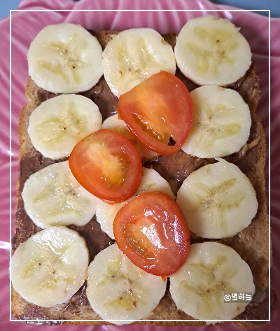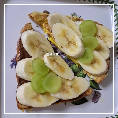 냉동실에 고단백 현미식빵이 있고, 냉장실에 초코와 땅콩청크 크림이 있다. 바나나(8개, 2,480원)만 사 와서 초코바나나 토스트를 만들어 먹었다. 달걀물 입혀서 식빵을 굽고 초코와 땅콩 크림을 바른다. 그 위에 자른 바나나를 올리면 끝이다.