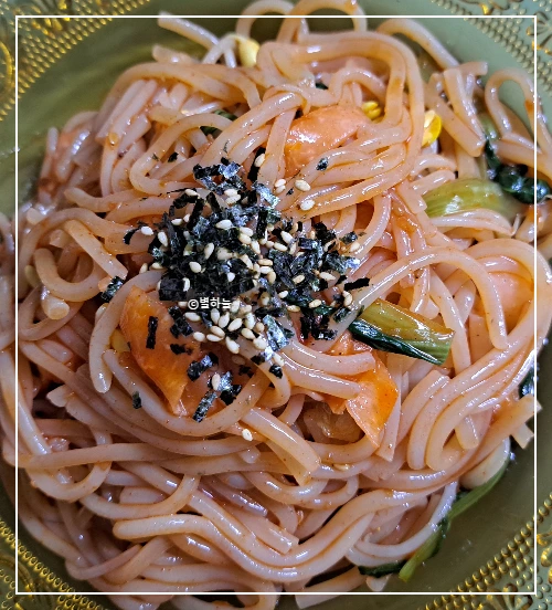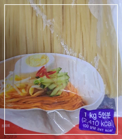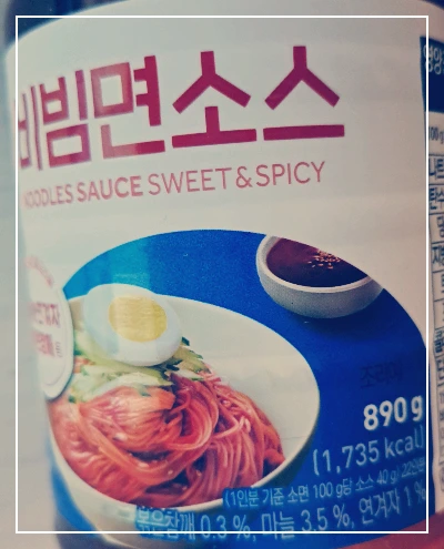 백설비빔면소스 890g이 세일가 4,980원이어서 샀고, 쫄면도 1kg(5인분) 2,480원에 샀다. cj콩나물은 990원이다. 냉장실에 있는 쌈무와 청경채를 곁들여 쫄면이 완성되었다. 사 먹으려면 1인분에 5,500원은 줘야 하는 쫄면을 여러 번 해 먹을 수 있다.
