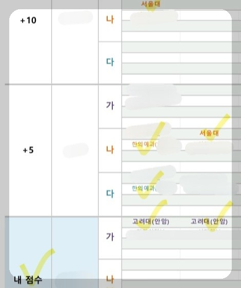 3월 아이의 점수에 맞는 지원 가능 대학 자료입니다. (글·사진 ⓒ별하늘)