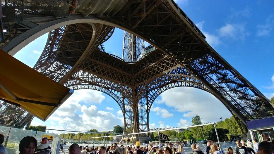 에펠탑은 생각보다 사진 찍기가 힘들었다. 워낙 높은 탑이어서 한 번에 사진으로 담기가 쉽지 않았다. 말로만 듣던 에펠탑을 영접하니 그 느낌이 상상하던 것과는 많이 달랐다. 그냥 크고 멋진 모습일 거라 상상을 했는데 막상 가까이 가 보니 엄청난 구조물이었다. 굉장히 복잡하고 거대한 구조물에 압도되었다. 어떻게 이런 것을 만들 생각을 했을까 하는 생각부터 들었다.