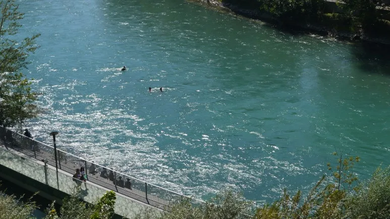 제법 물살도 세고 깊어 보이지만 수영을 즐기는 사람들이 있었다. 구명조끼도 입지 않아서 위험해 보이기도 했지만, 흐르는 강물을 따라 떠내려가면서 유유자적 수영을 즐기는 모습을 보니 무더위를 날려 주는 것 같았다. 이날도 무지 더웠던 기억이 난다. 저 강물에 뛰어들고 싶은 충동을 느꼈다. ^^;