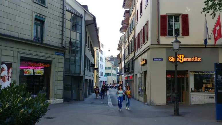 스위스 국기가 게양되어 있는 걸 보니 여기가 스위스라는 실감을 할 수 있었다. 빨간색을 자주 접할 수 있었다. 국기도 그렇고, 전차, 스위스 나이프, 각종 기념품들에 빨간 색상이 주를 이루고 있었다.
