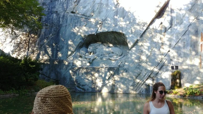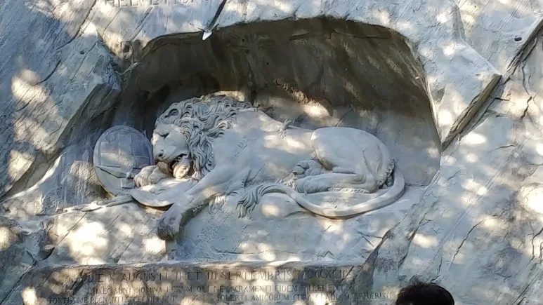 가장 먼저 들른 곳은 빈사의 사자상이다. 프랑스 대혁명에서 전사한 스위스 용병을 기리기 위해 만들어졌다고 한다. 사자의 옆구리에 박힌 부러진 창이 리얼하게 조각되어 있었다. 덴마크의 유명 조각가 베르텔 토르발트젠의 디자인을 루카스 아른이 조각했다고 한다. 가까이서 보니 규모가 제법 큰 조각상이었다.
