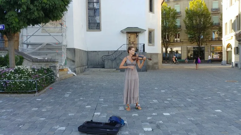 바이올린 버스킹을 하고 있었다. 사람들은 지나다녔지만 관객은 거의 없었다. 잠시지만 관객이 되었다. 관람 후 버스킹 팁을 넣었는지 기억은 나지 않는다. ^^;