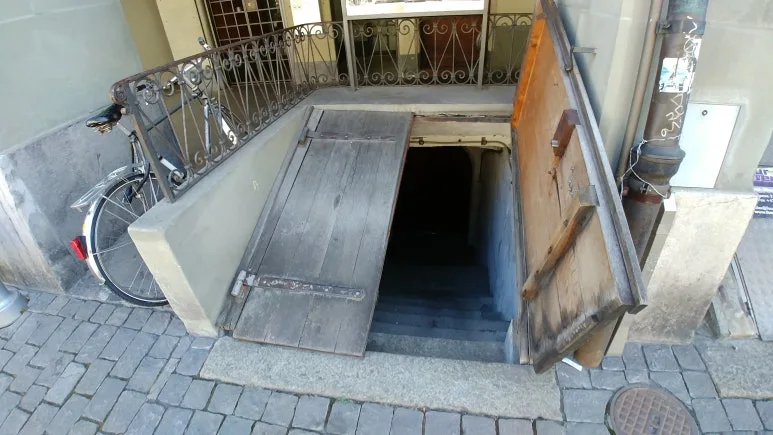 아래 사진은 도로 좌우에 줄지어 있는 건물들의 하부로 내려갈 수 있는 통로다. 이 지하실 입구 같은 문을 통해 들어가면 각 건물의 지하로 연결되어 있다고 한다. 내려가 보지는 않았는데 마치 미지의 세계로의 연결 통로 같은 묘한 느낌이 들었다.