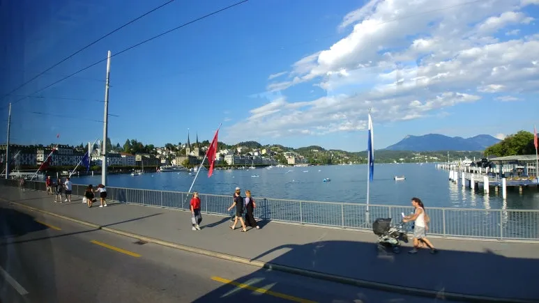 베른 구시가지 관광을 마치고 루체른으로 이동했다. 버스에서 바라 보이는 호수 너머로 아름다운 스위스 산들이 멀리 병풍처럼 둘러져 있었다. 바다처럼 넓은 호수와 파란 하늘이 어우러져 청명한 스위스의 자연을 뽐내고 있었다.