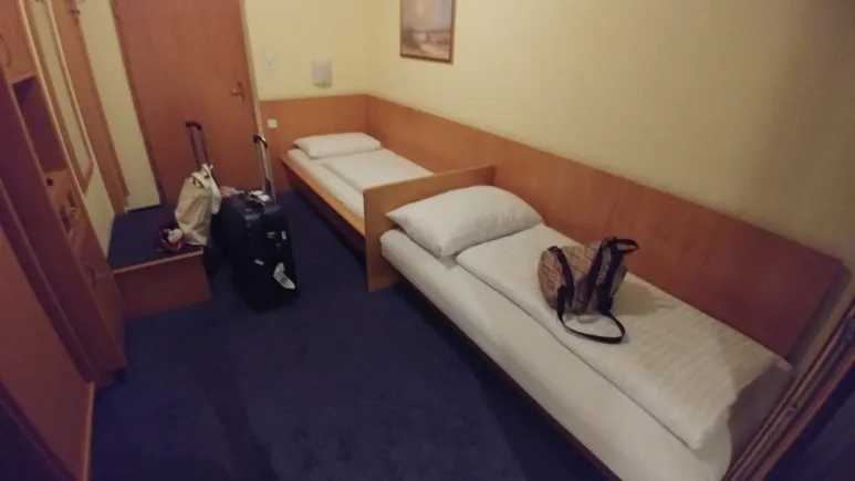 이제 유럽 여행의 마지막 밤이다. 오스트리아의 숙소 내부다. 그동안의 다른 나라 숙소와는 느낌이 또 달랐다. 마치 대합실 의자 같은 모양의 침대가 웃기기도 하고 특이했던 기억으로 남아 있다. 방은 나름 쾌적한 상태였다.