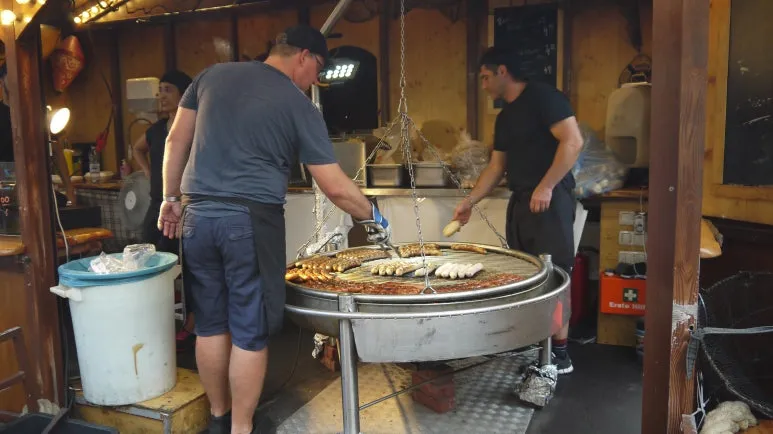 시장에서 소시지를 정성스럽게 굽고 있었고, 소리와 냄새가 식욕을 자극했다. 잠시 뒤에 점심 식사가 예정되어 있어서 눈으로만 먹음직한 장면을 보며 아쉬움을 달랬다.