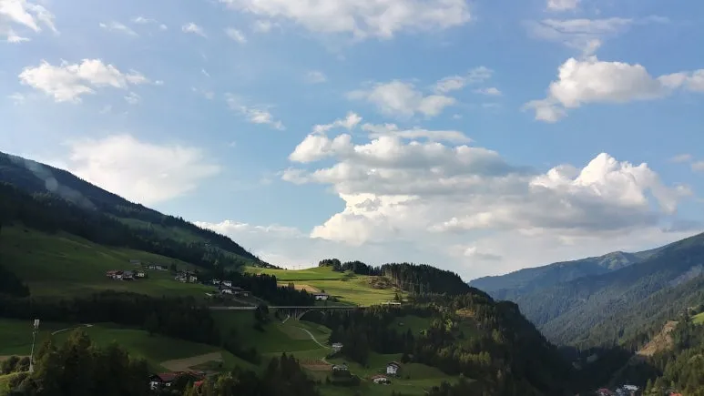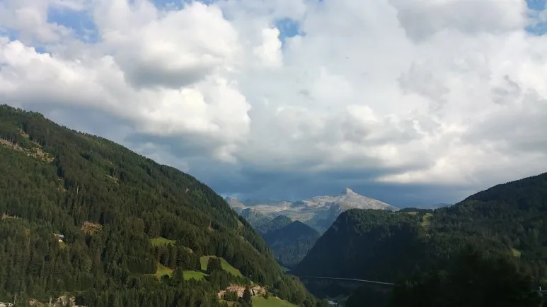 오스트리아 국경을 넘어선 뒤로 웅장한 산맥의 경치가 이어졌다. 파란 하늘을 가려버린 흰 구름 아래로 장엄한 산맥이 펼쳐져 있었다. 그야말로 장관이었다. 자연의 웅장함은 언제나 사람의 마음을 포근히 감싸준다. 숨 가쁘게 달려온 유럽 여행의 피로가 스르르 풀리는 것만 같았다.