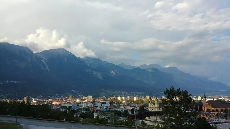 오스트리아의 인스브루크 전경이 눈에 들어오기 시작했다. 창 밖의 풍경은 조용하고 평안한 마을 느낌이었다. 이름 모를 멋진 산을 병풍으로 평화롭게 자리 잡은 마을의 모습이 아늑했다. 이젠 진짜 오스트리아로 들어가 본다.