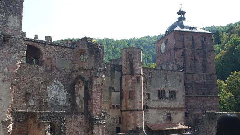 언덕 정상 하이델베르크 성에 도착했다. 과거의 화려함은 온데간데없고 폐허가 된 성의 앙상한 모습만 남아 있었다. 세월의 흐름 속에서 서서히 역사 속으로 잠겨가는 고성의 모습을 보며 잠시 생각에 잠겼다. 시간은 흘러가고 세월의 뒤안길에 역사의 흔적만 남았다.