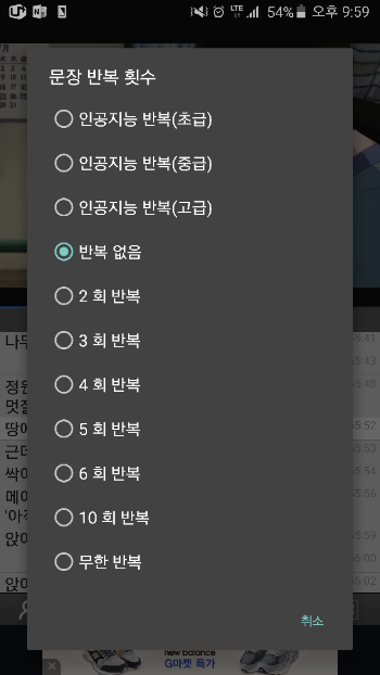 한 문장에 대해 반복을 설정할 수 있습니다. 잘 들리지 않거나 자신없는 문장이라면