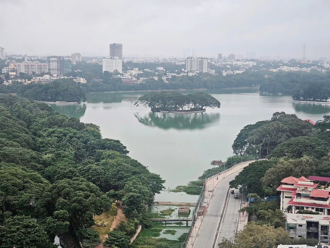 방에 들어서자 유리창 측면으로 울소어 레이크 (Ulsoor Lake) 도 보이고