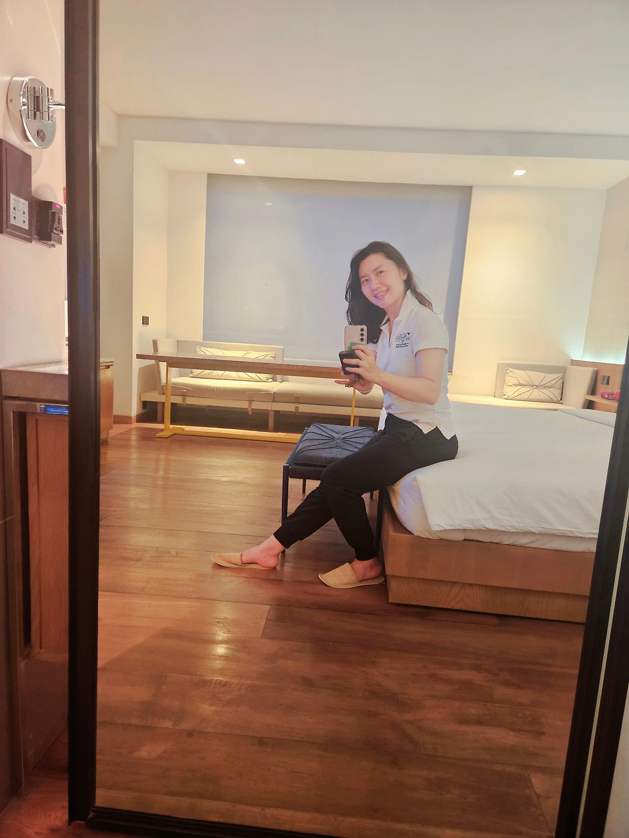 체크아웃하고 떠나기 직전에 기념사진 촬영하라고 포토존을 꾸며놓은 것도 나름 아기자기한 맛이 있었다.
