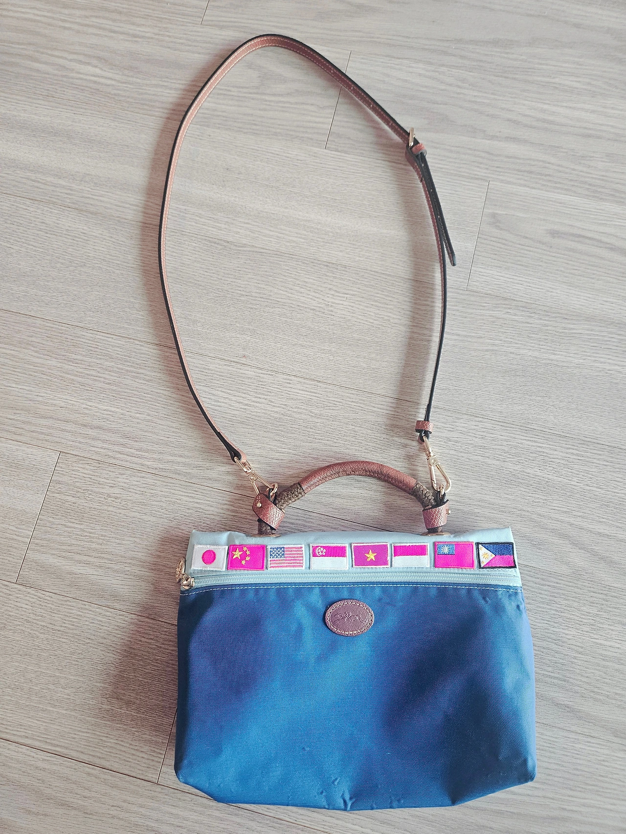 유행은 돌고 돈다더니 롱샴이 다시 부활했다. 스트랩 같은 부자재도 사기 쉬워졌다. 그 가방을 어떻게 다시 살려볼까 궁리를 했더니 요즘은 와펜을 많이 붙이는 게 아닌가! 국기 모양 와펜을 사서 곰보 자리에 붙였더니 생각보다 찰떡이었다! 와펜 하나당 2천 원, 몇 만 원 들이지 않고 죽었던 가방을 부활시켰다.