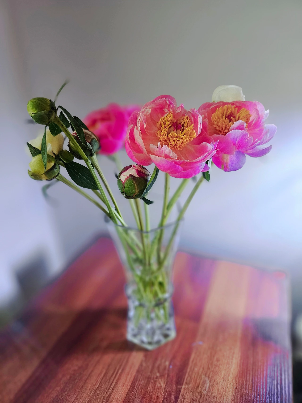 특히 5월은 작약의 계절. 작년 이맘때도 작약을 샀는데 올해는 더욱 풍성한 다발을 주문했다. 하루하루 변화하는 모습에서 생명력이 느껴졌다. 이제는 만개한 꽃에서의 아름다움이 아니라 꽃 피기 직전 봉오리 상태에서의 기대감이 더 좋다.
