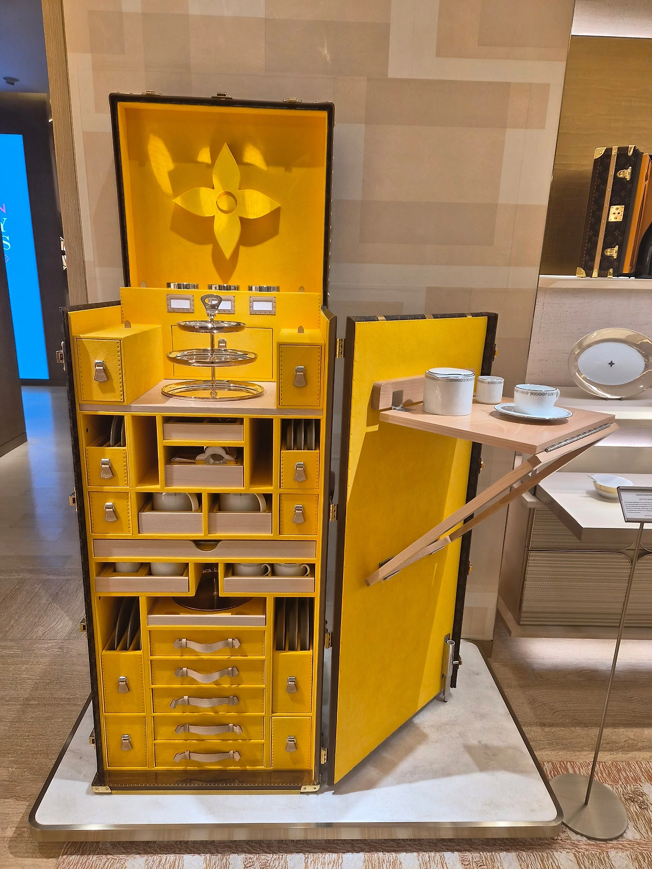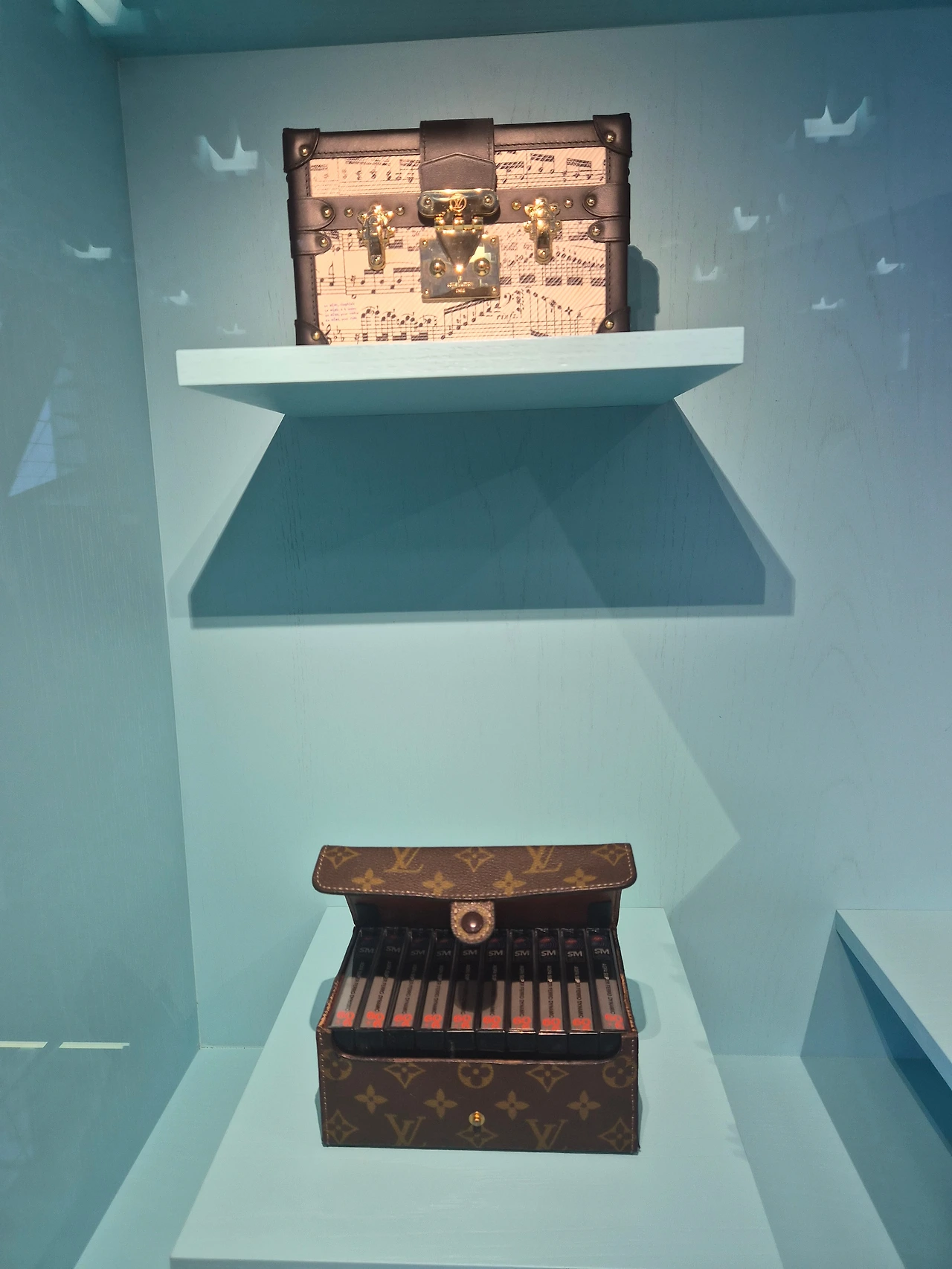 이런 여행용 가방 말고도 정말 다양한 케이스가 많았다. 기타/우쿨렐레 케이스도 있고 추억의 카세트테이프 케이스도 있었다. 당연히 어떤 케이스이던 시그너처 로고가 있기 때문에 루이비통 제품인지 단번에 알 수 있음이다.