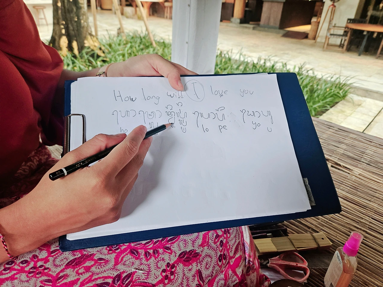 론타 라이팅은 나뭇잎에 발리 문자를 새기는 체험이다.