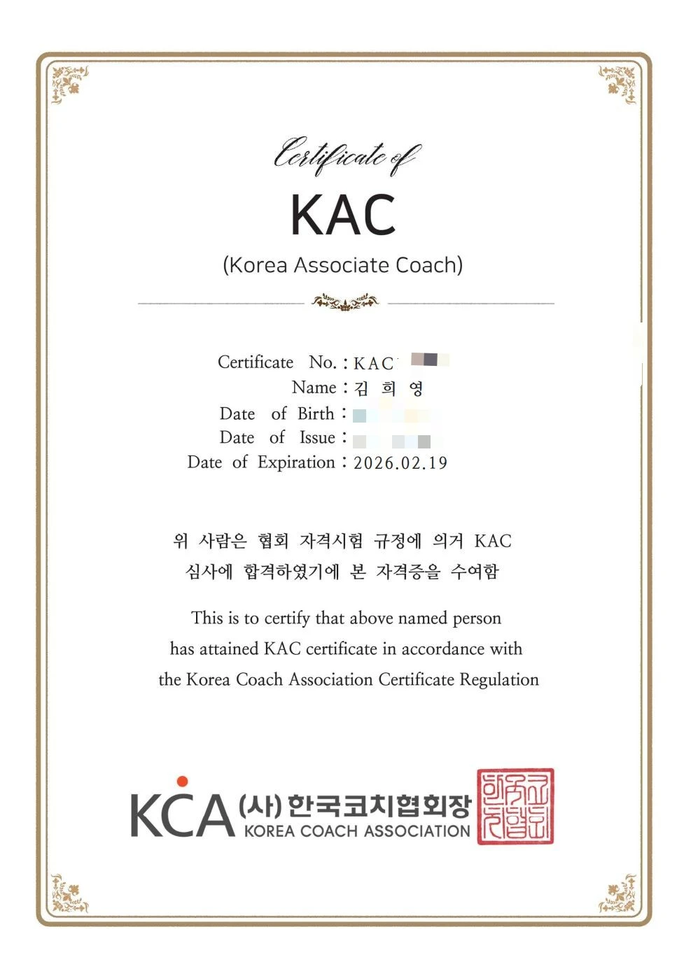 2년의 시간이 흘러 육아 휴직 종료를 앞두고 조금이라도 준비한 상태에서 복직을 하고 싶었다. 무엇을 공부해 볼까 고민하던 중 휴직하기 직전 회사에 시범적으로 도입되던 코칭 제도가 생각났다. 자격증을 소지한 임직원을 대상으로 사내 코치를 선발하는 것이었는데, 휴직으로 커리어가 단절된 나에게 새로운 도전이 될 것 같았다. 그런 계기로 KAC를 공부하게 되었다. 다양한 주제로 코칭 실습을 해봤는데 주말 계획 세우기부터 시작해서 전날 있었던 부부 싸움도 다루어 보았다. 코칭을 받으니 엉킨 실타래처럼 곽 막힌 것이 술술 풀리는 듯했고 격렬했던 감정을 차분히 가라앉히는 데에도 도움이 되었다. 실습 시간이 쌓이면서 오랫동안 마음 한편을 차지하던 불편함과 모호함을 모두 꺼내보았다. 내 주변을 둘러싼 인간관계, 복직을 앞두고 두려운 마음과 커리어에 대한 불안감, 코치로서 바라는 미래상 등등.