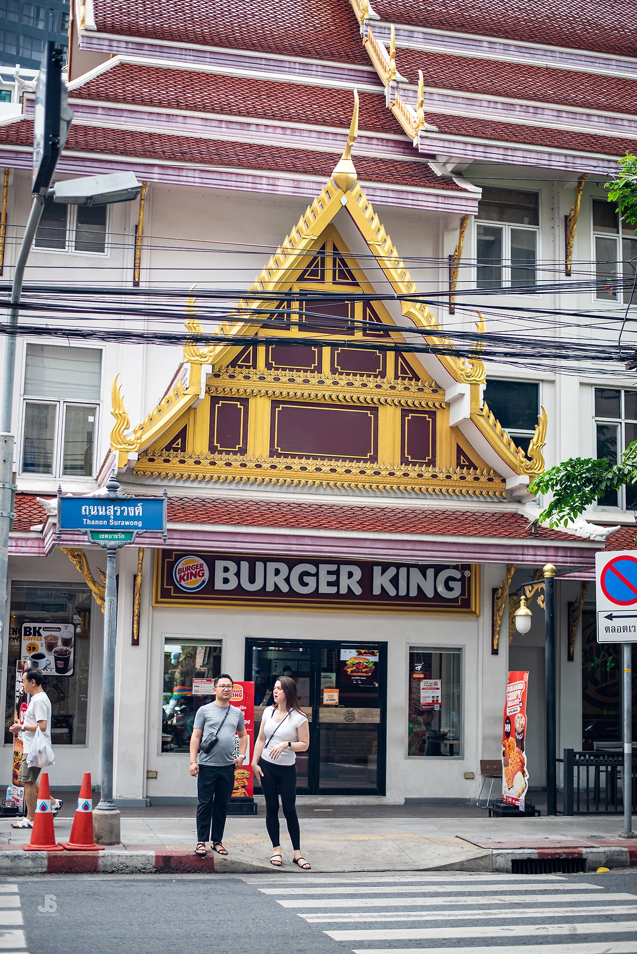 수라웡 로드변에 위치한 버거킹 매장이다. 태국 사원의 박공 지붕 모양을 외부 디자인에 채택해 유니크한 분위기를 연출한다. Wat Burger King이라 불러도 손색이 없을 듯하다. Wat이 what과 발음이 같으니, 중의적 네이밍이기도 하다.