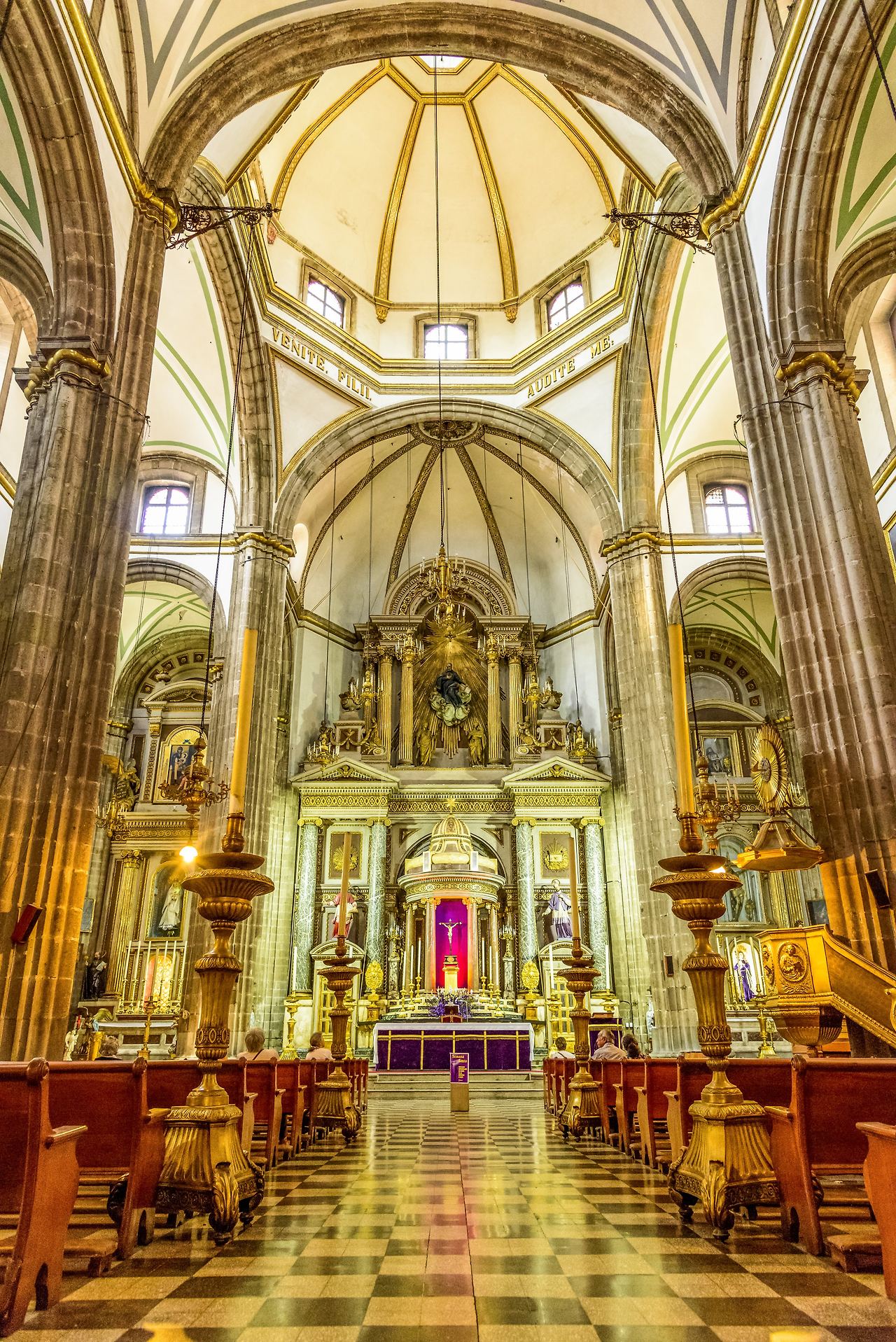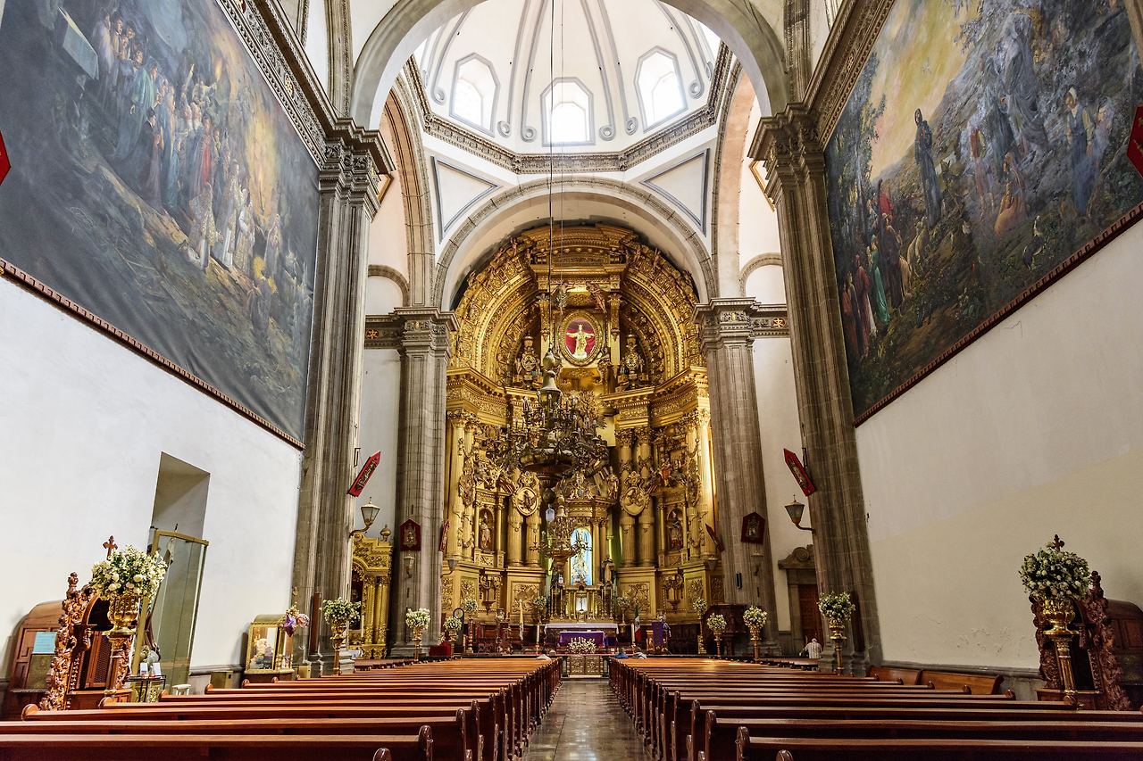 성당 내부. 다른 멕시코 성당들에 비해서 내부 장식이 화려한 편이다.